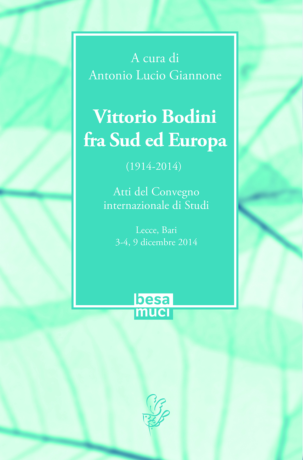 VITTORIO BODINI (Bari 1914 - Roma 1970), di famiglia e origini leccesi, oltre che poeta tra i più originali e significativi del Novecento, è stato anche narratore, critico, operatore culturale, nonché uno dei maggiori interpreti e traduttori italiani della letteratura spagnola. Nella collana “Bodiniana”, diretta per Besa editrice da A.L. Giannone, sono apparsi finora undici titoli. La stessa casa editrice ha ristampato l’edizione Oscar Mondadori di Tutte le poesie, a cura di O. Macrì.